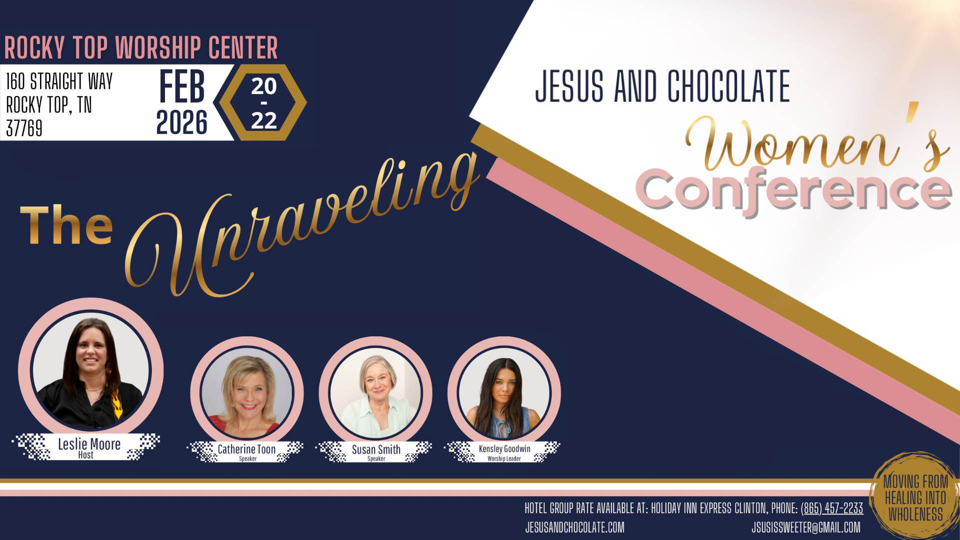 Join us for a weekend of truth, tenderness, worship, connection, and yes—chocolate—as we walk the path from mended to whole, from bound to free.